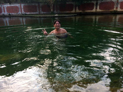 日本の温泉と違って水着を着て入るタイプのもので、入っていたのはベルギーから来たという一人旅の男性、彼もここでは何もやることがないとぼやいていた。