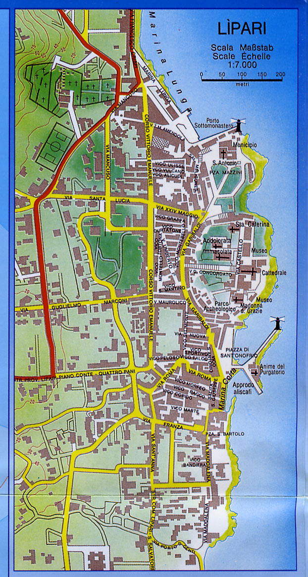 リパリ島とリパリ島主要部及びブルカーノ島の地図(JPEG)とPDFファイルの地図