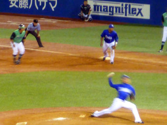 そして、連敗を脱した後も一進一退だったが、私が試合を見に行った12日は完封リレーで快勝、その後の前半戦最後の3連戦となった読売ジャイアンツとの試合は、何と3タテで単独首位に再浮上した。