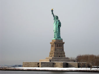 写真を見てもせっかくの自由の女神が雪混じりの曇天で色あせて見える。
